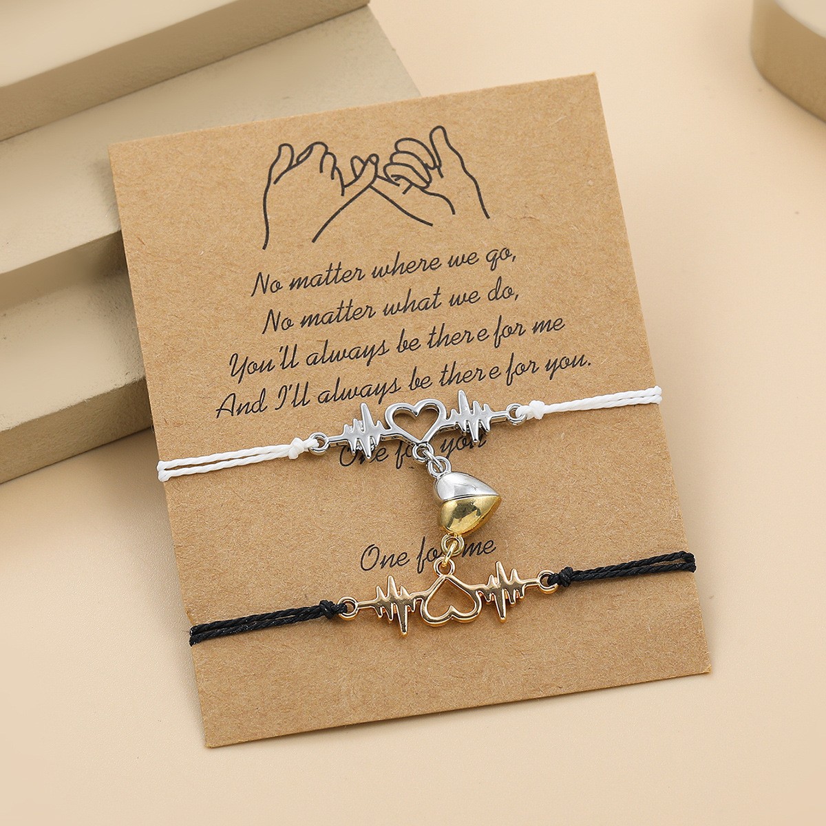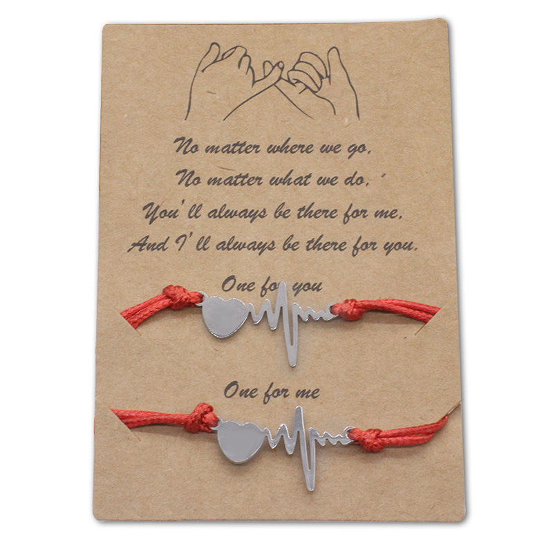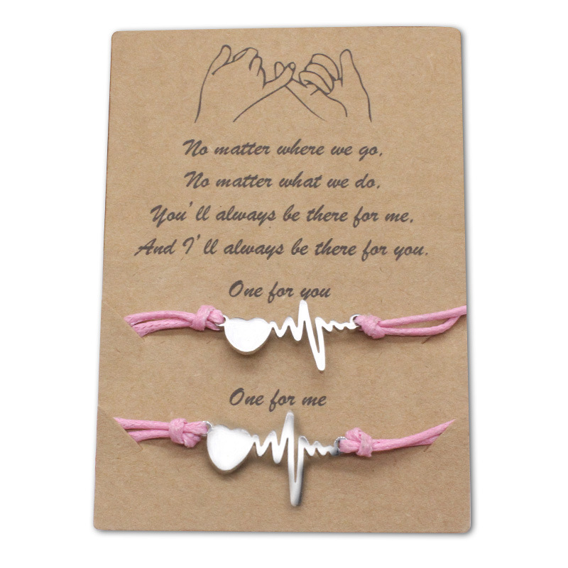 Colores: Pulseras de cuerda con diseño de electrocardiograma (ECG), un accesorio simbólico que representa la conexión y los latidos compartidos. Disponibles en varios colores: rosa, rojo y negro, ideales para combinar o regalar en pareja.